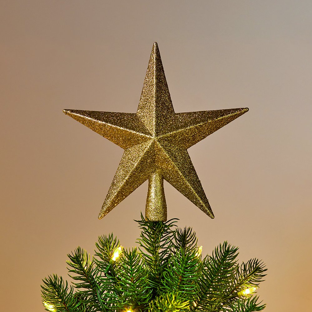 Afterwards, check the upper third of the tree to make sure it isn’t sparse. A few extra wraps near the top can sharpen the outline and help your tree topper shine. Then, make sure the lights guide the viewer’s eye upwards. Finish your last visible loop just below the topper, then tuck any remaining cable neatly into the back branches.
