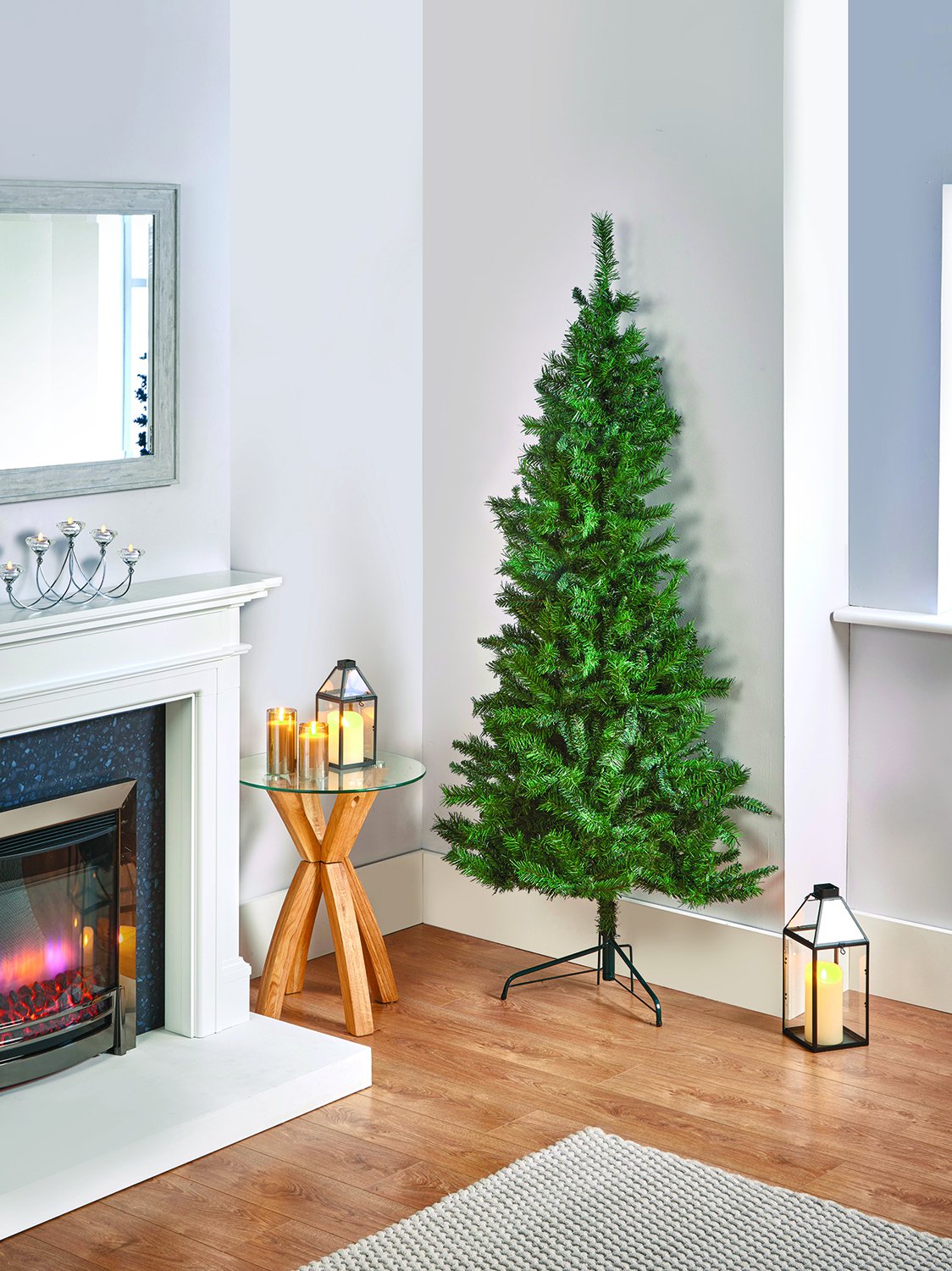 Unused corners can shine this festive season. Premier’s Dual-Purpose Corner and Half-Wall Tree in Corner mode nests neatly into the angle. You gain presence without moving furniture, preserving walkways and maintaining an open feeling in the room. The classic green finish blends with most schemes.
