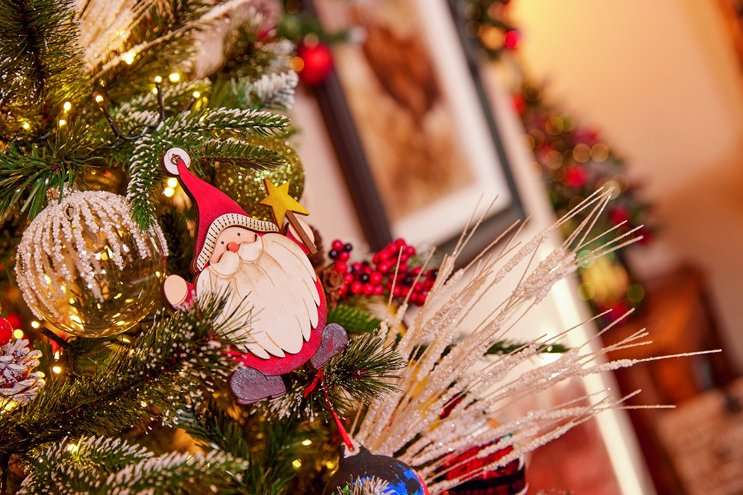 Stand back at the main doorway and take in the whole tree. Check for dark pockets, ribbon kinks, or baubles touching. Nudge a few branches if needed to open or fill these areas.